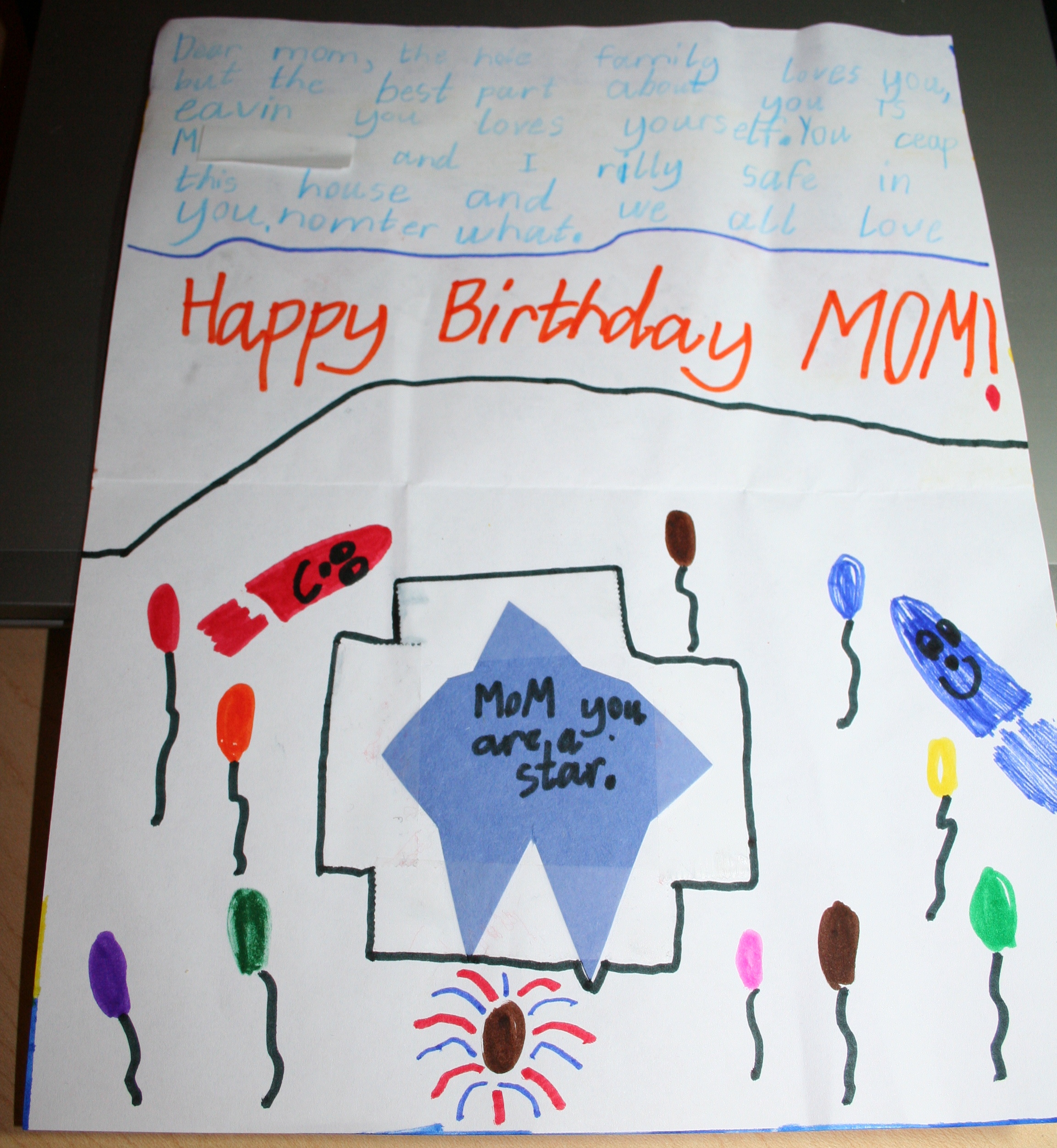 “Dear mom, the hole family loves you, but the best part about you is eavin you loves yourself. You ceap M and I rilly safe in this house and we all love you, nomter what.”